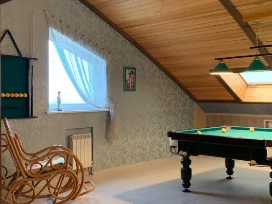 Продается половина дома (таунхаус) в районе поселка Юбилейный (ул. Летняя), 2011 года постройки. Дом располагается в живописном и тихом месте города с прекрасным видом на Волгу. Общая площадь дома (330 кв.м.) полностью готов к проживанию, ремонт выполнен из дорогих и качественных материалов. На цокольном этаже располагается кинотеатр и тех. помещение. На первом этаже холл, кухня-гостиная, сан.узел. На втором этаже две спальни, гардеробная и сан.узел, Так же имеется полноценный мансардный этаж, на котором находится гостевая спальня, бильярдная, сан узел и библиотека. Участок общей площадью 8,46 соток. На участке расположен детский стационарный бассейн с фильтрацией и подогревом, детская площадка, телица. Имеется зимний гараж на 1 автомобиль и гараж для квадроциклов, дизельгенераторная с генератором на 6 квт. Дополнительно летний гараж на 2 автомобиля. Отопление индивидуальное (газовый котел), канализация септик с биоочисткой. Просмотр возможен в любое время по предварительной договоренности